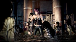 Upon finally escaping with Tsumugi, Ayane assures the young lady that while she suffers due to her relationship with her sister, Ayane is sure that Tsumugi's sister understands and still loves her, and that they would still be family even until the future. Happy to see Tsumugi reply that she would become stronger from these words, Ayane would depart shortly.