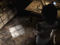 Mio decides to investigate, and after entering the nearest house and exploring, they come across the Camera Obscura and are then attacked by a ghost of a woman who previously became trapped in the village.